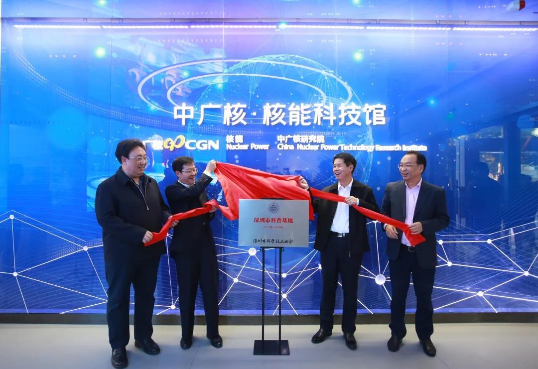 科技展上,由中广核研究院运营的中广核核能科技馆被深圳市科协认定为“深圳市科普基地”,刘建军、蒋宇扬、庞松涛、王安共同为“深圳市科普基地”揭牌。