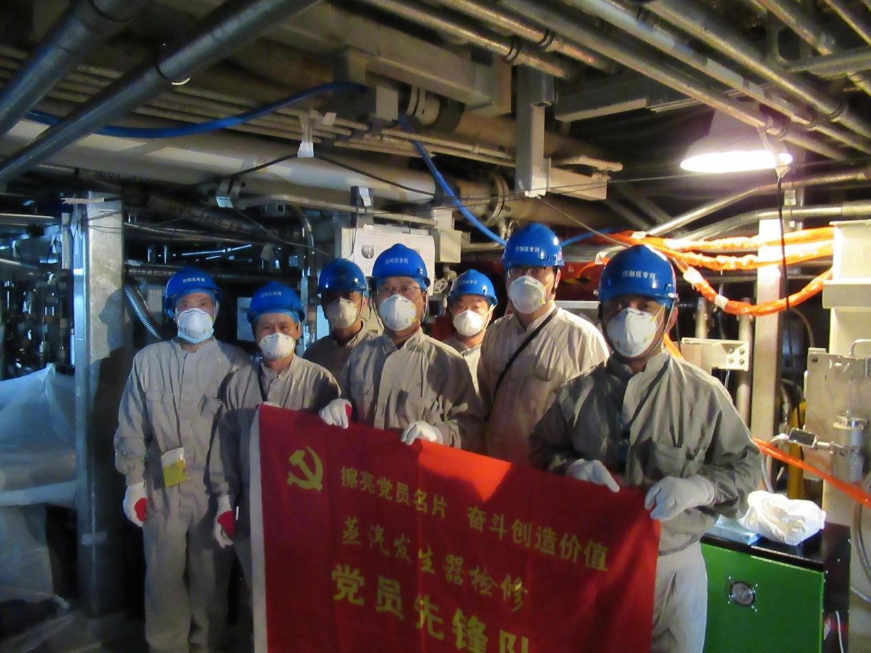 作为核电站关键核一级设备,蒸汽发生器一次侧盖板拆装、堵板拆装工作是大修主线任务。在党员先锋队的带领下,该专项工作组对每项工序进行反复推敲、有效分解,特别是堵板演练过程使用秒表计时,在穿着铅衣、气衣等防护设备的情况下,静机班姜春晓做到仅35秒进出蒸发器水室,使受照剂量大幅降低。由于前期实操培训演练准备充分、人员合理分工、现场实施有序,两台机组蒸发器检修工作分别实现主线提前2.17小时、5.48小时,创造历次大修最佳记录,受山东核电大修指挥部通报表扬。