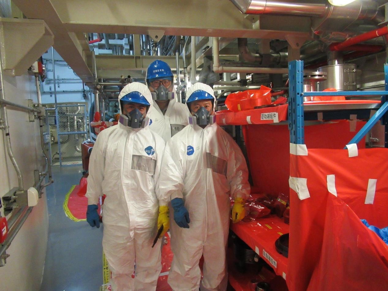核燃料装换料操作是核岛大修“核心中的核心”。公司成立装换料党员先锋队,由3名操作员与其他斜帮导向工具操作员共同完成了168组燃料组件的装卸操作。“工作期间,我们要穿着近20公斤的钨衣、纸衣及半面罩等附加防护用品连续作业6小时,大家离开时连体服基本都湿透了,衬衣、衬裤都能拧出水来。”工作组成员姜琳说。