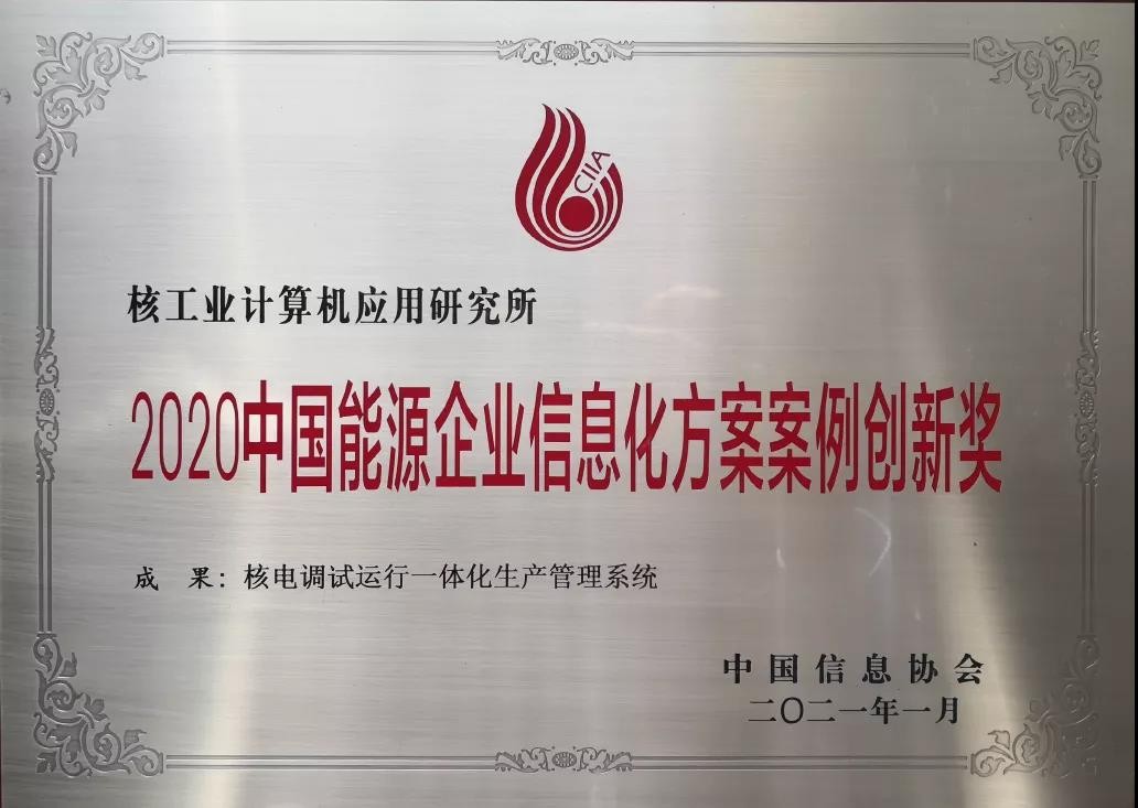 2021年1月,在北京举行的中国信息协会能源分会上,“核电调试运行一体化生产管理系统”荣获“2020中国能源企业信息化方案案例创新奖”。