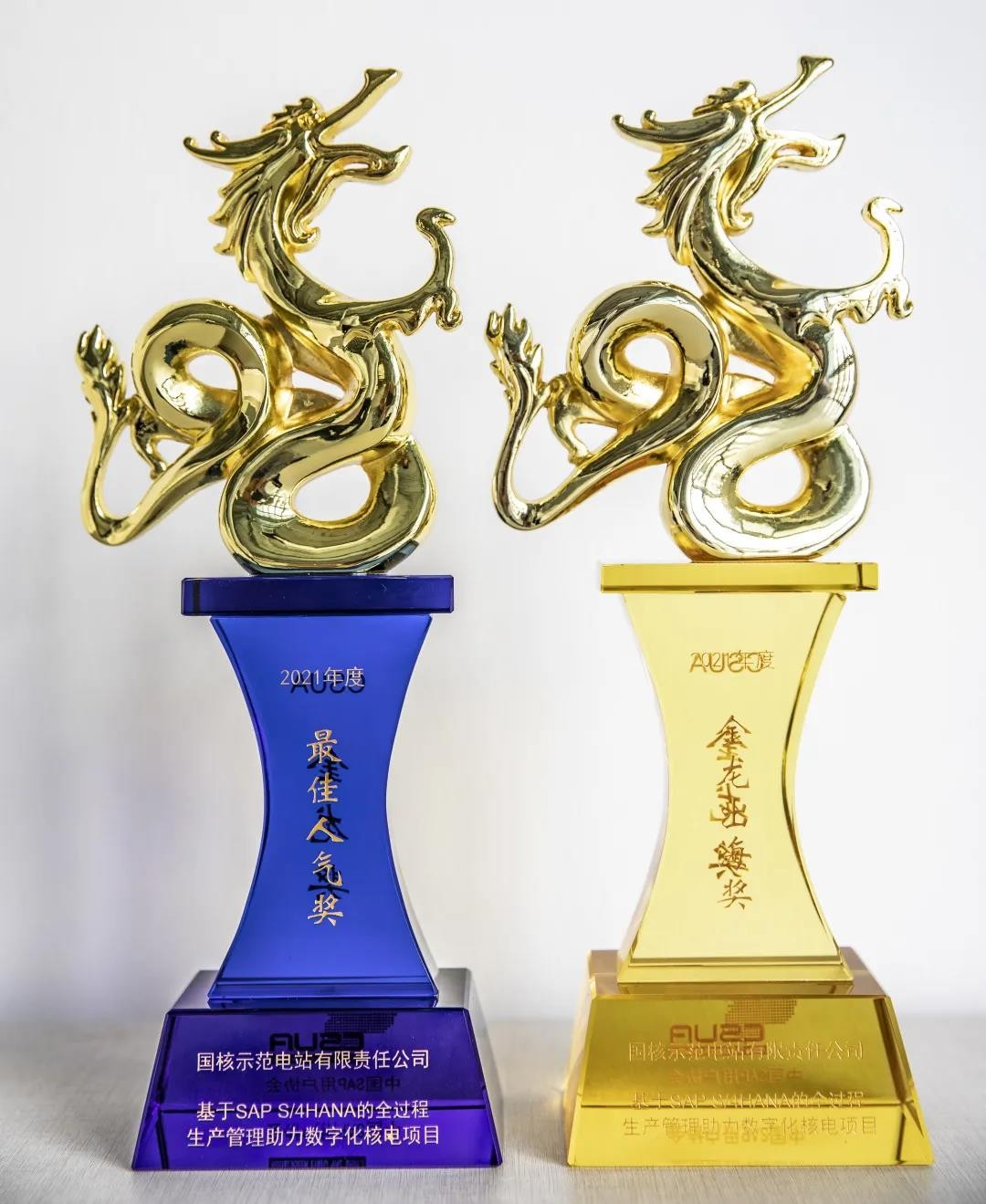 2021年10月,在上海举行的“CSUA 2021年度会员大会”上,“核电生产管理信息系统(一期)项目”荣获“金龙出海”及“最佳人气”两项大奖。
