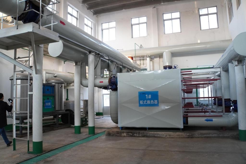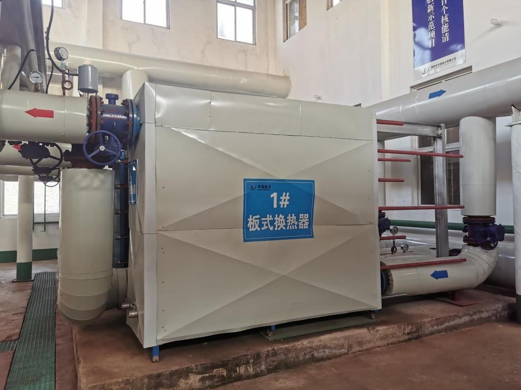 热力公司换热站的板式换热器,核电站出来的热水与普通暖气水在这里交换热量