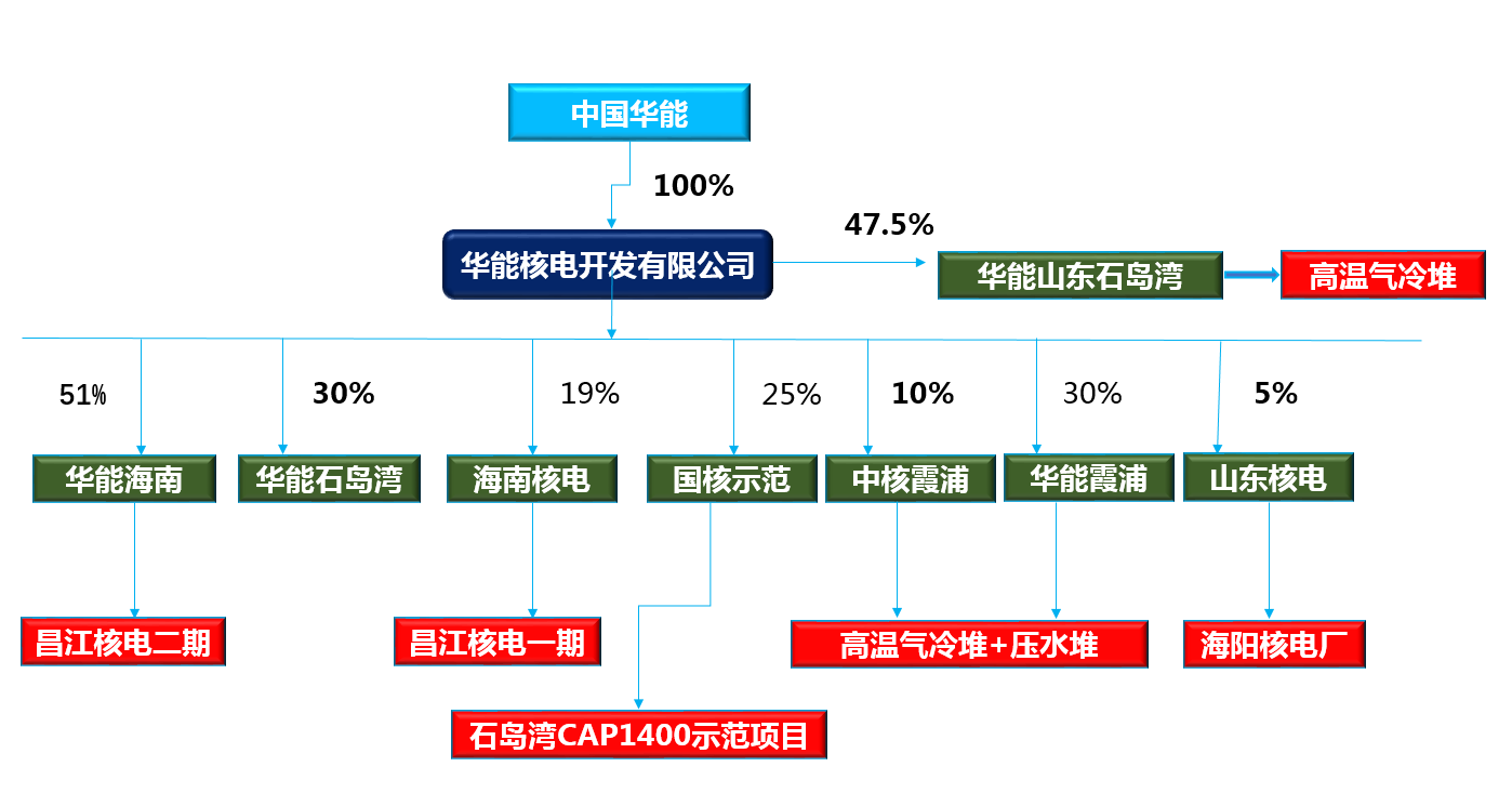 中国华能是继国家电投之后第2家获得核电资质的发电集团,为我国第4家拥有核电牌照的央企。中国华能集团旗下华能核电开发有限公司(简称“华能核电”)控有华能海南昌江核电有限公司51%股权,对昌江核电二期工程拥有控股权。同时,华能核电还控有华能山东石岛湾核电有限公司(简称“华能山东石岛湾”)47.5%股权,系石岛湾高温气冷堆示范工程的控股方。