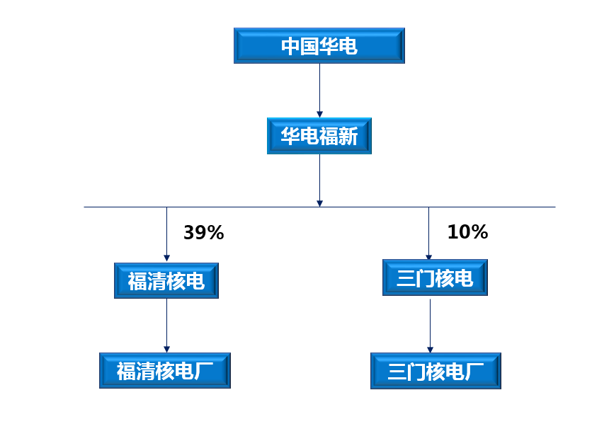 中国华电集团通过旗下上市平台——华电福新能源股份有限公司(简称“华电福新”)分别持有福建福清核电有限公司(简称“福清核电”)和三门核电有限公司(简称“三门核电”)39%和10%股份,拥有福清核电和三门核电资产权益。