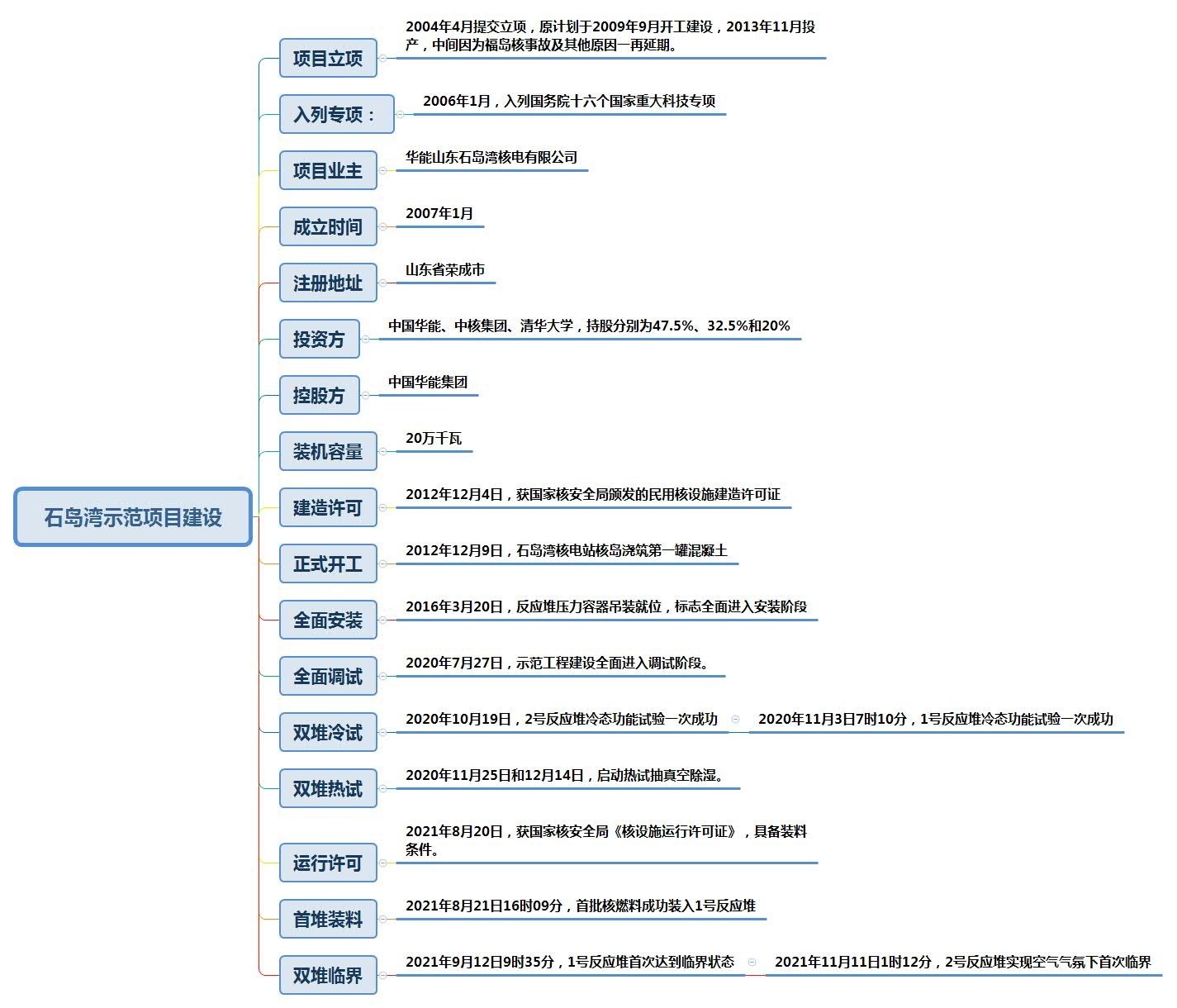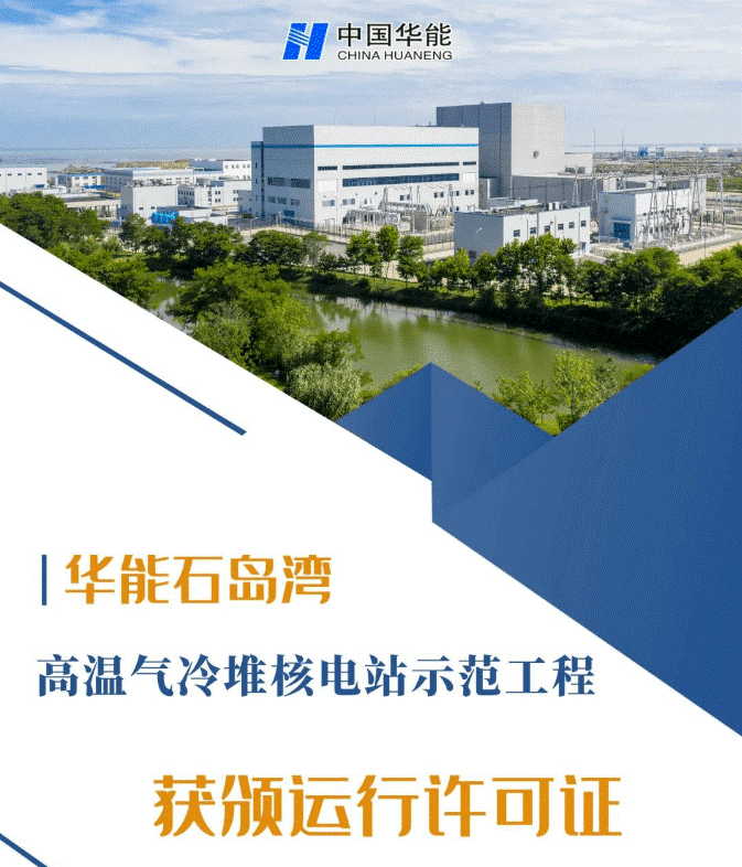 2021年8月20日,石岛湾高温气冷堆核电站示范工程获国家核安全局颁发《核设施运行许可证》,标志着示范工程已通过运行前的核设施安全许可审批,具备装料运行条件。