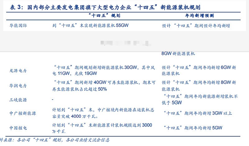 关于十四五,中国核电已出具新能源装机规划,“十四五”期间新能源装机预计年均新 增 5GW,装机增量处于国内第一梯队。预计同时,受到 2016-2018 年核 电审批暂停的影响,公司 2022-2023 年核电投运将进入平台期。新能源机组的大规模投产将为公司业绩增长起到较好的弥补作用,保障公司在 2022-2023 年新投产核电机组较少的阶段业绩稳步向上。