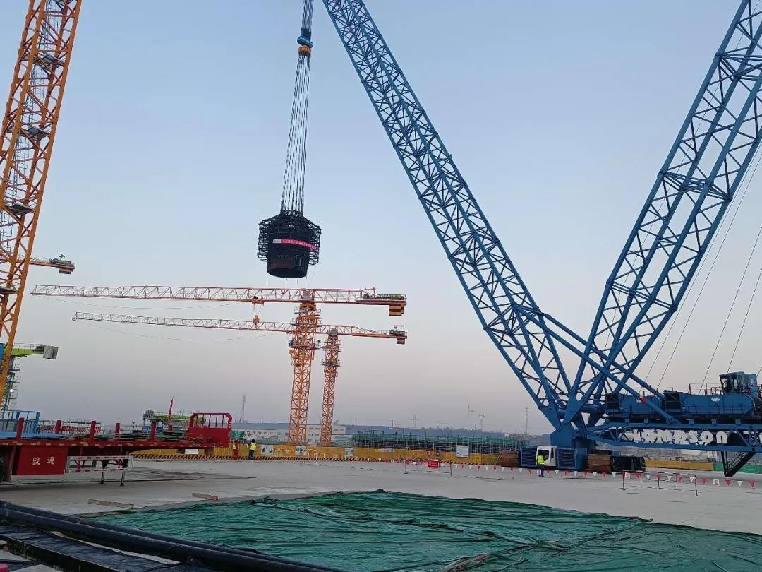 2021年11月18日5时36分,初冬凌晨的徐大堡项目现场已灯火通明,伴随着吊装总指挥“开始吊装”一声令下,2600T履带吊干净利落的完成了起钩、变幅、回转、行走、落钩等一系列动作,于2021年11月18日8时36分顺利完成了核岛堆芯竖井的吊装工作,历时3个小时,整个吊装过程安全、质量受控,提前于四级进度计划25天。