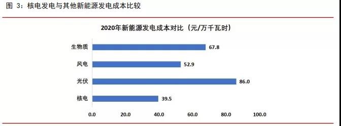 相比光伏、风电、生物质等清洁能源,核电的发电成本更低,未来随着国内用电需求不 断增长的背景下,核电将是国内主要新能源发电方式之一。