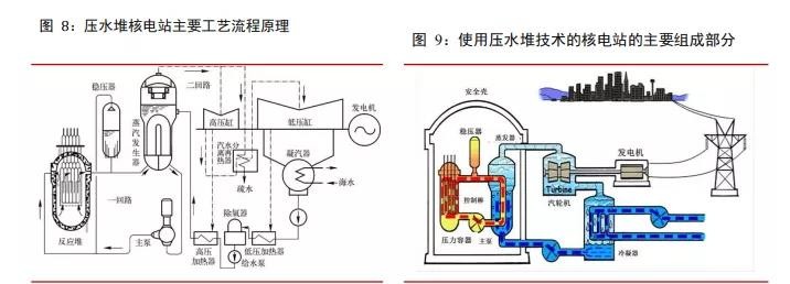 全球范围内大多数用于发电的在运及在建核反应堆采用压水堆技术。压水堆核电站由核 岛和常规岛组成,核岛中的大型设备主要包括蒸发器、稳压器、主泵等,是核电站的核 心装置;常规岛主要包括汽轮机组及二回路其他辅助系统,与常规火电厂类似。