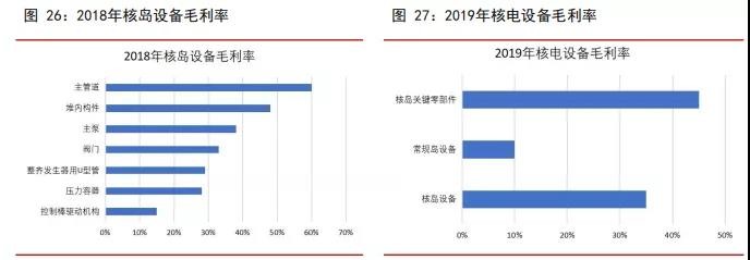 核岛设备制造是核电国产化的核心,垄断程度高,技术壁垒高,属于高端产品,毛利率 也较高。大部分常规岛设备无特殊的技术要求,技术壁垒较低,市场参与者较多,竞争 更为激烈,所以毛利率水平偏低。