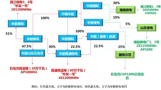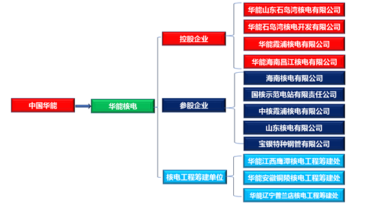 目前,中国华能旗下华能核电控股4家核电子公司,参股5家核电企业,另设3个核电工程筹建单位,形成了较为完整的核电站建设、开发和运营体系。