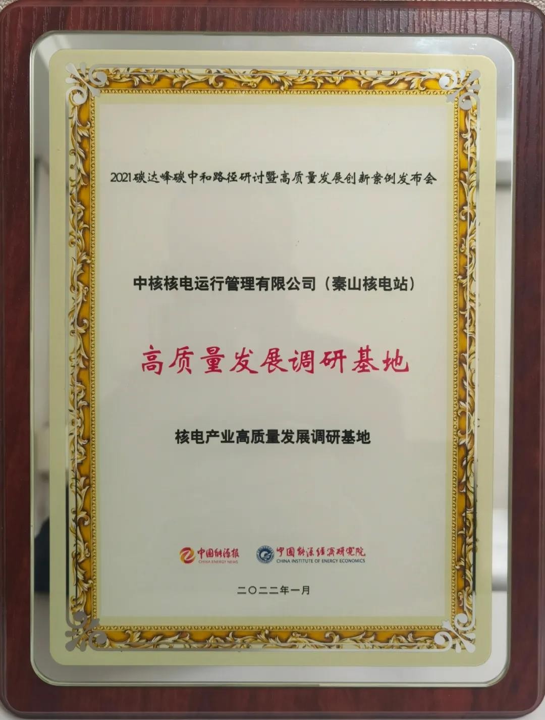 1月7日,“碳达峰碳中和路径研讨暨高质量发展创新案例发布会”在京举行。发布会上,秦山核电被授予“高质量发展调研基地”称号,《以南方供热“秦山方案”助推“双碳”战略》案例入选“碳达峰碳中和高质量发展创新案例”。