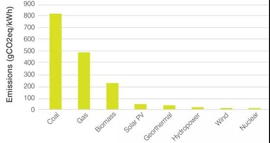 资料来源:2014年IPCC,可选择电源的全球变暖潜力