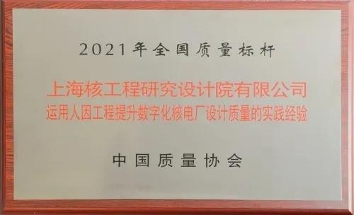 近日,上海核工院申报的《运用人因工程提升数字化核电厂设计质量的实践经验》,首次荣获全国质量标杆,并作为国家优秀项目在2021年度全国质量标杆发布暨经验交流会上作经验交流。