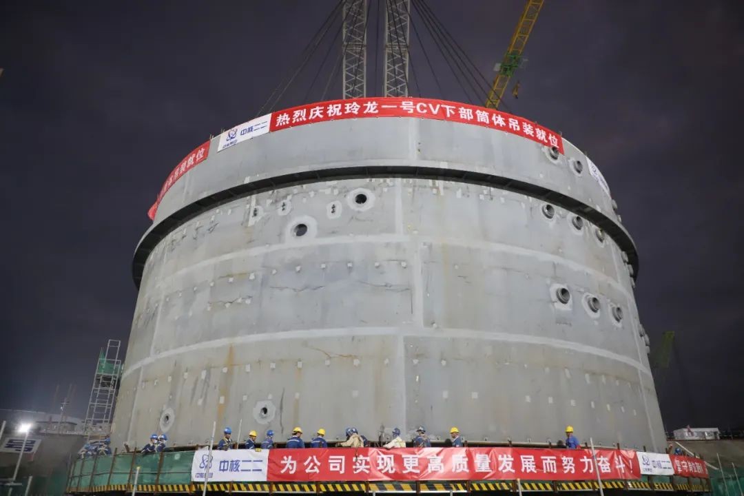 2月26日,全球首个陆上商用模块化小堆“玲龙一号”钢制安全壳下部筒体吊装就位,吊装过程安全、质量受控,提前一级进度计划考核节点46天完成,为进一步高质量稳步推进小堆工程建设奠定了坚实基础。