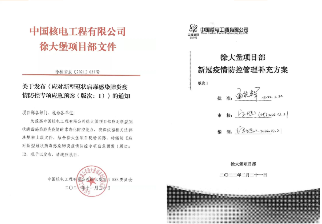 针对严峻的疫情防控形势,项目部相继发布了《应对新型冠状病毒感染肺炎疫情防控专项应急预案》《徐大堡项目部新冠疫情防控管理补充方案》,构建项目部科学防控体系,织牢疫情防控网。