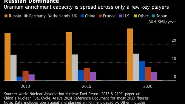 俄罗斯生产的浓缩铀约占全球总量35%(图片来源:彭博)
