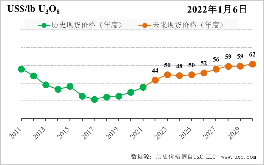 2022年3月8日,中国核能行业协会发布第16期“CNEA国际天然铀价格预测指数(2022年3月)”。