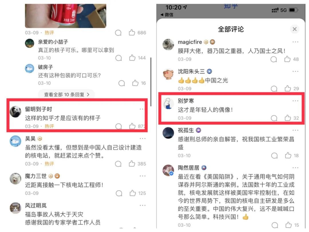 有网友表示「这才是年轻人的偶像」,还有网友说「我看到邢总设计师亲自现身知乎为大家科普华龙一号的设计,就感觉我们的科研人员用最容易懂的话语为我们科普」。邢继也回复了部分网友评论,称赞知乎的高知氛围。这一原本显得门槛颇高的问题,因为邢继的亲自参与,让“冷知识”有了“热效果”。