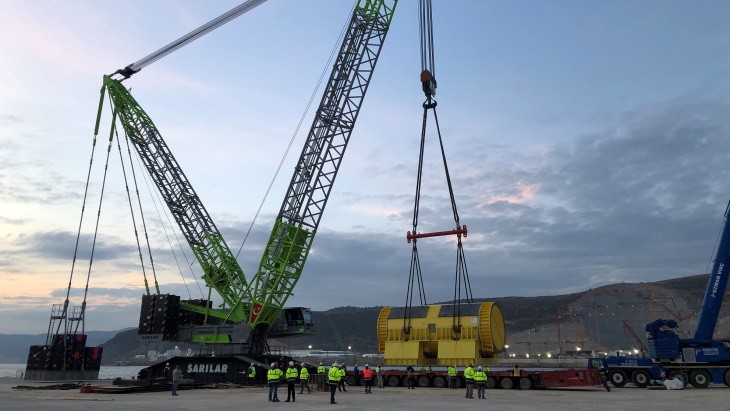 Akkuyu 1 的涡轮发电机在施工现场卸载(图片:Akkuyu Nükleer)