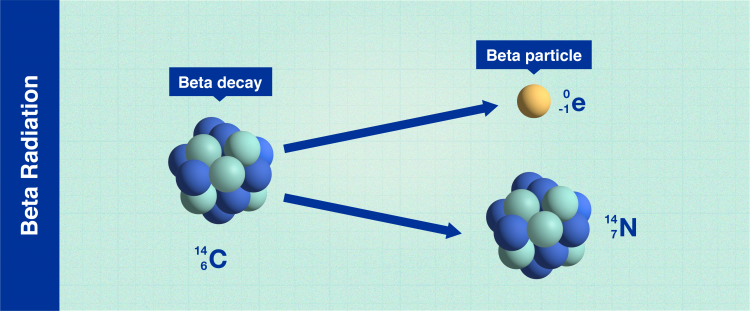 发射β辐射的一些不稳定原子包括氢3(氚)和碳14。氚被用于应急灯中,例如在黑暗中标记出口。这是因为氚的 β 辐射在辐射相互作用时会导致磷光体材料发光,而无需通电。例如,Carbon-14 用于为过去的对象标注日期。