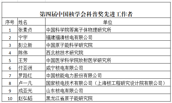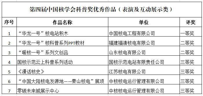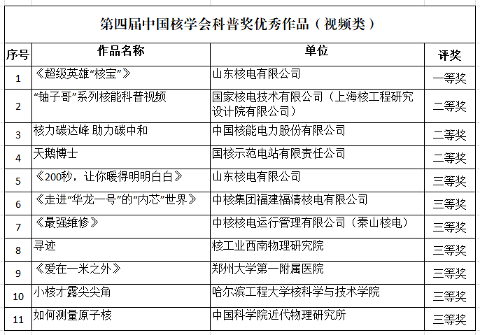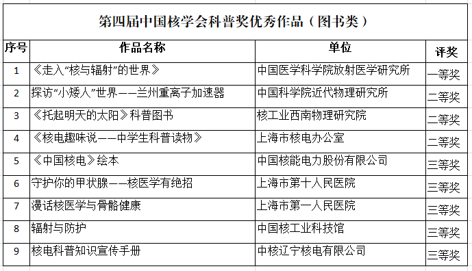 现将第四届中国核学会科普奖获奖结果公示如下,公示期5日(2022年3月22-28日)