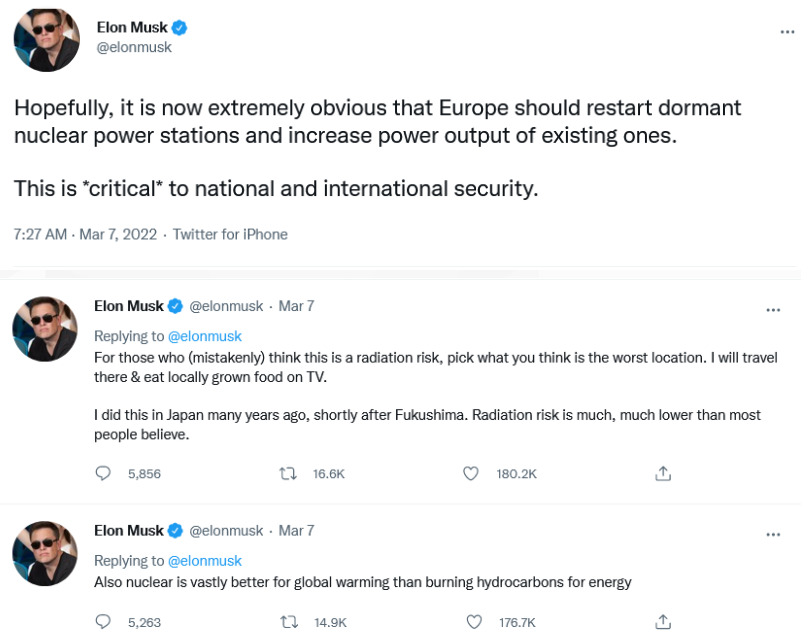特斯拉首席执行官马斯克就在个人社交媒体上写道,核能“至关重要”,而辐射风险被夸大了。风险投资家马克·安德森(Marc Andreessen)则呼吁“现在就在美国和欧洲新建1000座最先进的核电站。”