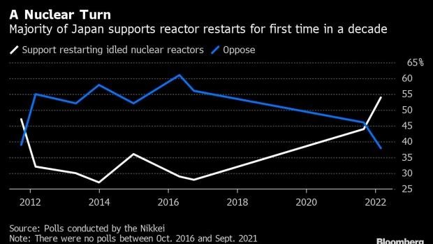 日本最大商业报纸进行的一项民意调查显示,自2011年福岛核事故以来,支持重启闲置核反应堆的日本人首次占据微弱多数。而当前正值日本电力短缺,电价飙升之际。