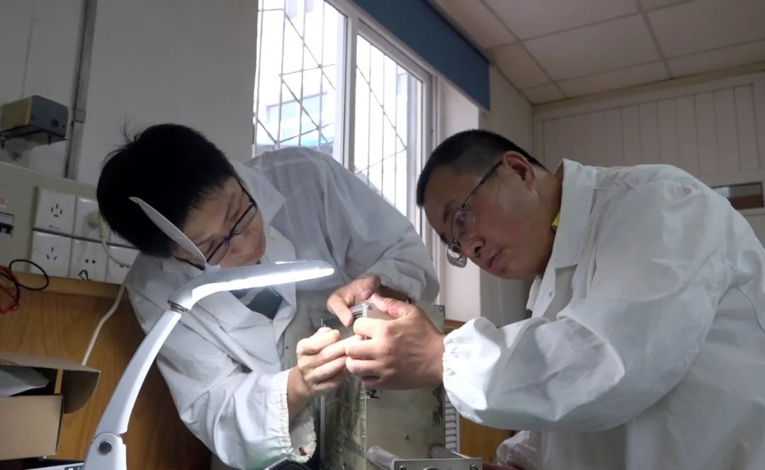 仪器是分析的基础,质谱综合班承担着公司各型质谱仪的检修任务,由于型号差异大,稳定性要求高,经常需要加班连续调试。夜已深了,在质谱分析间马腾、程栋和生产运行部胡慧峰正照着技术方案与电路图纸,排查着刚刚安装的控制单元。为了避免出错,他们将几十根接线的信息制成表格贴在电子柜上,逐一复查。这台质谱仪已运行30多年,这次由于测控系统故障,缺乏芯片信息与备件,正常检修已无法实施。为了尽快让它恢复测量能力,马腾与程栋制定出局部国产化改造的方案,材料一到他们便开始夜以继日地进行安装调试,改造的过程并非计划般一帆风顺,因为元件老化,改造调试中经常伴随着其它电路故障的发生。但一次次的失败没有动摇他们的信心,通过不厌其烦地复查,他们完成了一次又一次调试。时钟一圈圈地转动,这时一个激动地声音响起:“有了,信号都正常!”“试试控制功能。”“阀门动了,高压也有变化。”“今天就到这吧,后面咱们再努把力,争取让它焕发新春。”