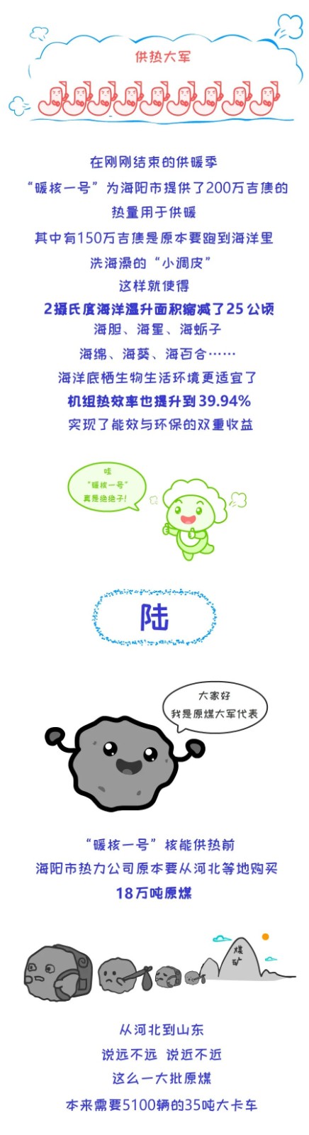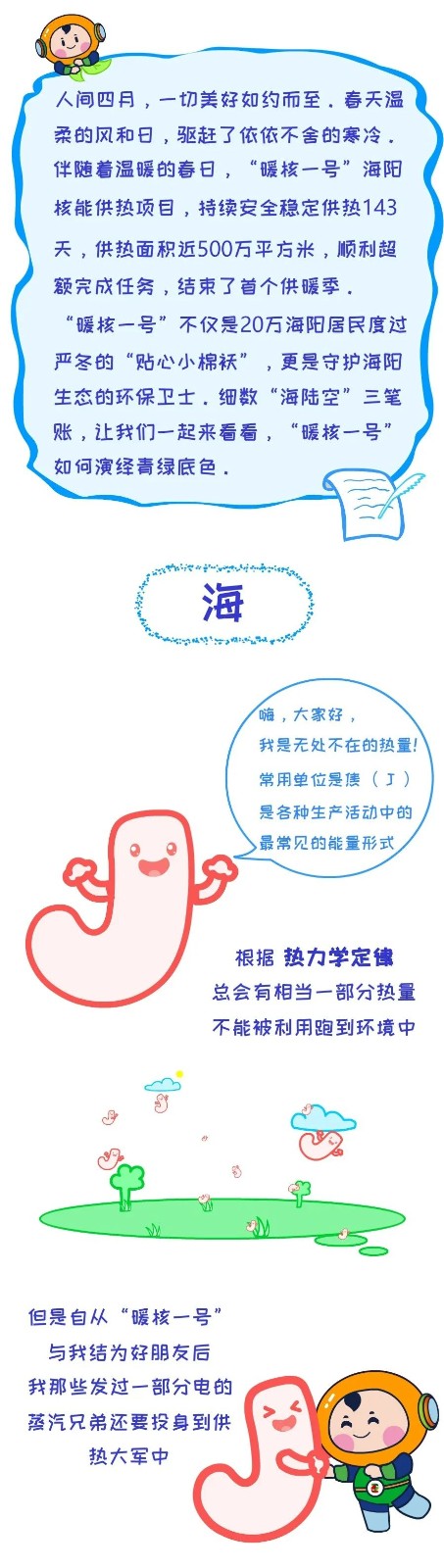 “暖核一号”不仅是20万海阳居民度过严冬的“贴心小棉”,更是守护海阳生态的环保卫士,细数“海陆空”三笔账,让我们一起来看看,“暖核一号如何演经青绿底色