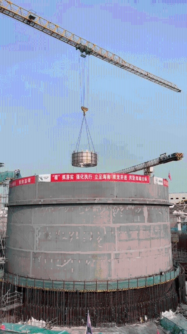 近日,海南昌江多用途模块式小型堆科技示范工程“玲龙一号”(ACP100)反应堆厂房内部结构堆坑一体化钢模吊装就位,钢模重量约4.85t,历时40分钟,开创了全球首个模块式小型堆一体化、模块化施工优化新篇章。