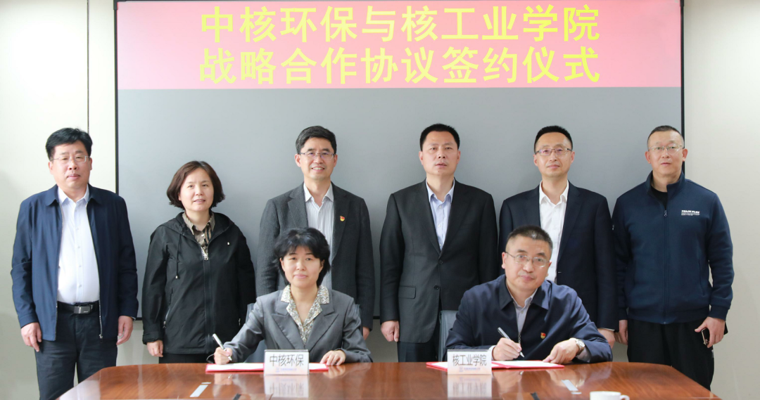 核工业学院副院长张士军与中核环保党委副书记、副总经理王英代表双方签署战略合作协议。核工业学院纪委书记战榆林,中核环保纪委书记董元莉、市场总监秦喜久和有关部门负责人参加会议。