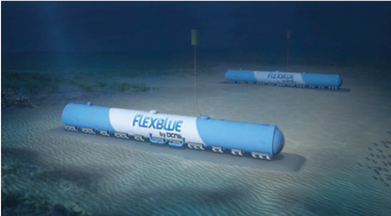 Flexblue是一个排水量12000的潜水器,装机容量为6万千瓦,是一种下潜式的柱形全模块化移动浮动式核电站。
