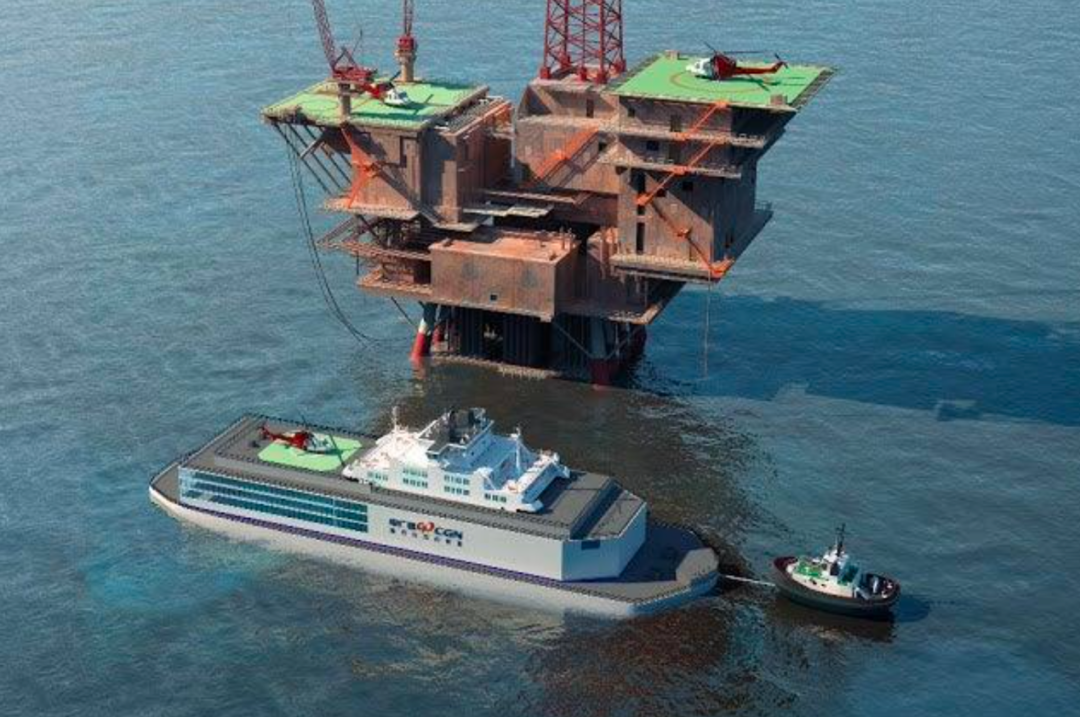 在建造时,工厂先将OFNP的各个模块组装好,然后用大型驳船运往锚定海域。