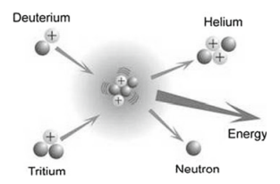 核聚变反应原理图(Deuterium氘与Tritium氚反应,产生Neutron中子与Helium氦,并释放能量) (图片来源:文献[2])