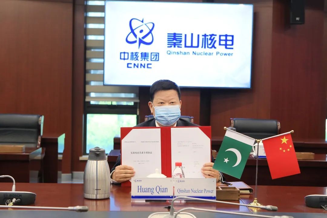 当地时间4月18日,我国自主三代核电华龙一号全球第四台、海外第二台机组——巴基斯坦卡拉奇电站3号机组通过临时验收。中核集团与巴基斯坦原子能委员会通过视频方式举行了临时验收签字仪式。秦山核电作为卡拉奇2号、3号核电机组(以下简称K2/K3项目)联合调试与试运行管理任务方参加仪式,并与巴基斯坦恰希玛核电站签署协议结成姊妹电厂。