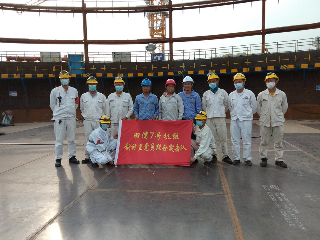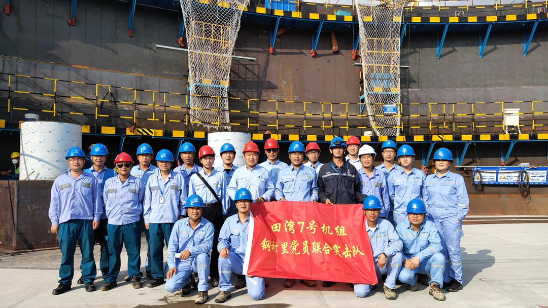 2022年4月20日,田湾7号机组钢衬里突击队 提前计划23天完成攻坚任务 ,成为第一个出色完成任务的精品工程突击队 ,经联委会办公室验证通过并批准结项,以实际行动生动诠释了党建在重大工程中的引领保障作用。