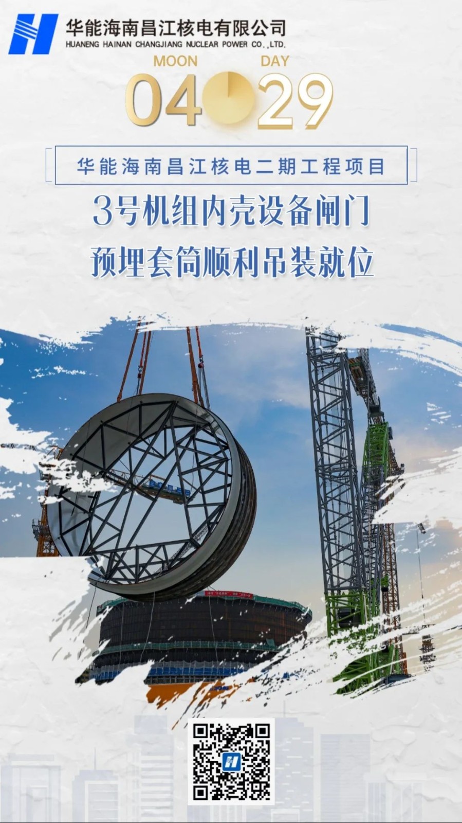 3号机组内壳设备闸门预埋套筒成功吊装就位,是华能海南昌江核电有限公司坚持党建引领、聚力攻坚,精益求精、艰苦奋斗的结果,下一步,昌江公司将以习近平总书记视察海南重要讲话精神为指引,深入学习贯彻省第八次党代会精神,持续开展“党建引领+”、海南省“建功十四五 奋进自贸港”劳动竞赛暨华能海南昌江核电二期项目“聚力攻坚杯”劳动竞赛,为集团公司“二次创业”、为助力海南加快建设具有世界影响力的中国特色自由贸易港贡献华能力量。
