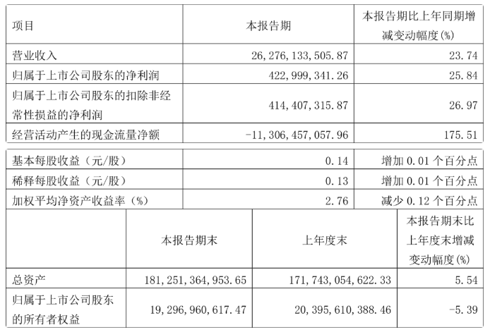 中国核建4月30日披露2022年第一季度报告。报告期内公司实现营业总收入262.76亿元,同比增长23.74%;归母净利润4.23亿元,同比增长25.84%;扣非净利润4.14亿元,同比增长26.97%;经营活动产生的现金流量净额为-113.06亿元,上年同期为-41.04亿元;报告期内,中国核建基本每股收益为0.14元,加权平均净资产收益率为2.76%。