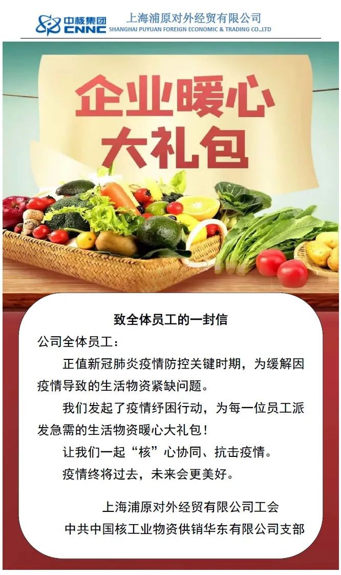 正值新冠肺炎疫情防控关键时期,为缓解因疫情导致的生活物资紧缺问题。我们发起了疫情舒困行动,为每一位员工派发急需的生活物资暖心大礼包!