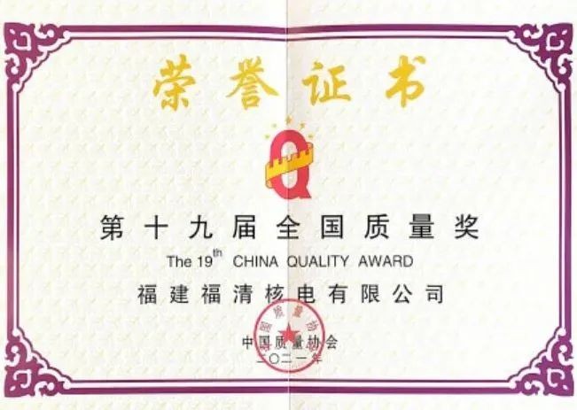 近年来,福清核电先后荣获全国质量奖、国家优质工程金奖、中央企业先进基层党组织、国家高新技术企业、全国爱国主义教育示范基地、首批央企爱国主义教育基地、福建企业100强等多项殊荣。