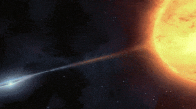 多数白矮星体积和地球差不多,然而质量却是地球的数百万倍,最大甚至可达1000万倍,相当于太阳质量的2.44倍,这样的星体的引力也是十分强大的,它同样会吸附周围的物质,如果它的周边有一颗红巨星,在两星相互绕行的过程中,白矮星就会不断的吸附红巨星上的物质,而这时候红巨星喷发出来的物资又大多是氢气,因此在白矮星的表面就会聚集大量氢气,由于白矮星的引力很强,其表层的氢气越聚越多的时候,底部在极大的压强和高温下就会引发核聚变,于是爆炸就发生了。