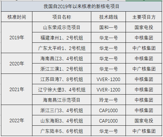 我国发展核电已有超过30年历史。2011年日本福岛核电事故之后,我国对核电的审批大幅收紧,整个核电建设产业随之进入低谷。直到2019年,我国核电项目才陆续开闸,打破多年的“零核准”状态。自2019年以来,共有11个新核电项目获得核准。
