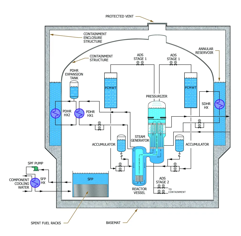 反应堆是被动冷却的,用于设计基准关闭。在事故情况下,反应堆冷却剂系统通过热虹吸作用继续循环。