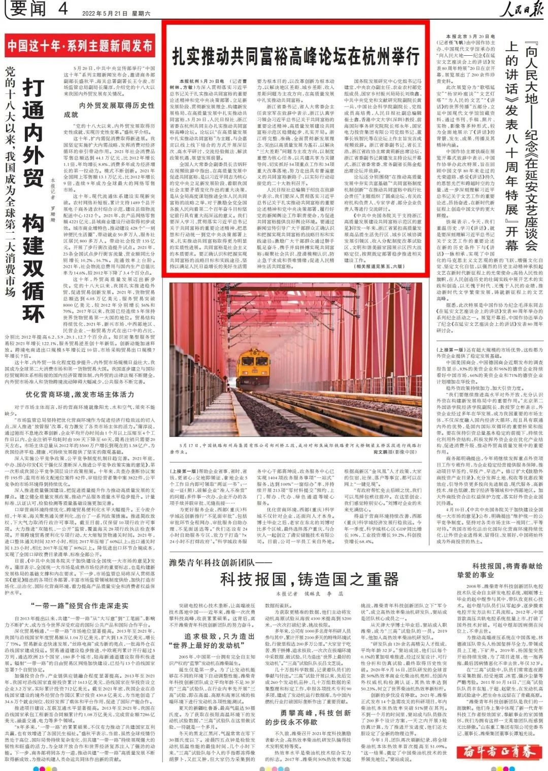 5月20日,由人民日报社、浙江省委共同主办的“扎实推动共同富裕”高峰论坛在杭州召开。全国人大常委会副委员长吉炳轩通过视频致辞,浙江省委书记、省人大常委会主任袁家军,人民日报社总编辑于绍良致辞。浙江省委副书记、省长王浩,浙江省政协主席黄莉新出席论坛,浙江省委副书记黄建发主持论坛开幕式,浙江省委常委、常务副省长陈金彪出席论坛并致辞。国家电投董事长、党组书记钱智民应邀参加论坛,并通过视频作了题为《国家电投的共同富裕方案》的主旨发言。