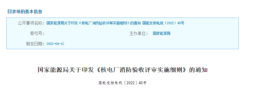 国家能源局关于印发《核电厂消防验收评审实施细则》的通知