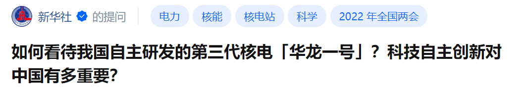 “华龙一号”是我国基于三十余年核电研发、设计、建设和运行经验,自主研发并成功建设的先进三代压水堆核电技术,在设计、设备、燃料、软件、建造、运行维护等领域均具有完整的自主知识产权。