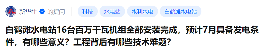 白鹤滩水电站是世界在建规模最大的水电工程,安装 16 台世界上单机容量最大的水轮发电机组,在技术难度上站在了当今世界水电的巅峰。