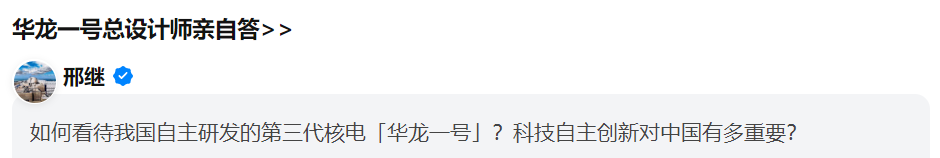 建设核强国,是我们每一个核工业人的愿望,华龙团队将继续努力,不断改进华龙技术,让中国的自主的核电技术引领未来核能事业的发展,为人类和平利用核能做出更大的贡献。