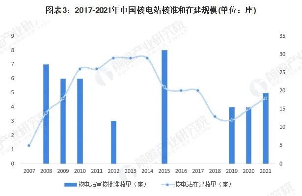 然而,2011年的福岛事件同样波及到了我们,我国政府对核电项目骤然转冷,核电产业进入发展停滞期。2015年虽有短暂重启,但后续政府出于对第三代核电站(三门 AP1000\华龙一号)的实用性考察而再次暂停。到“十四五”时期,根据《“十四五”规划和2035年远景目标刚要》,安全稳妥推动沿海核电建设成为“十四五”时期的重要任务。